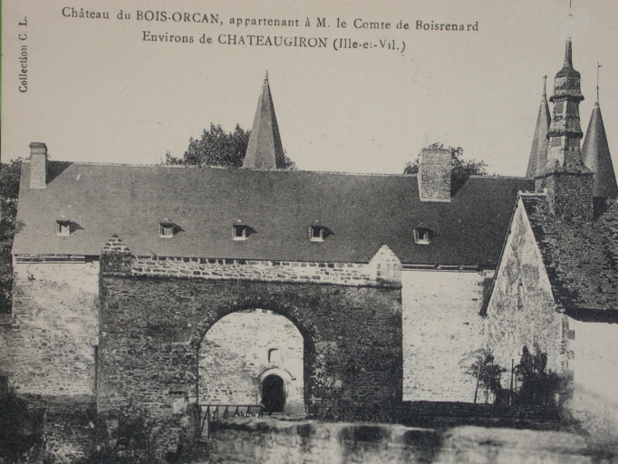 Le château du Bois-Orcan, entrée et enceinte, carte postale du début du 20e siècle, (A.D.Ille-et-Vilaine : 6Fi)Immatriculation