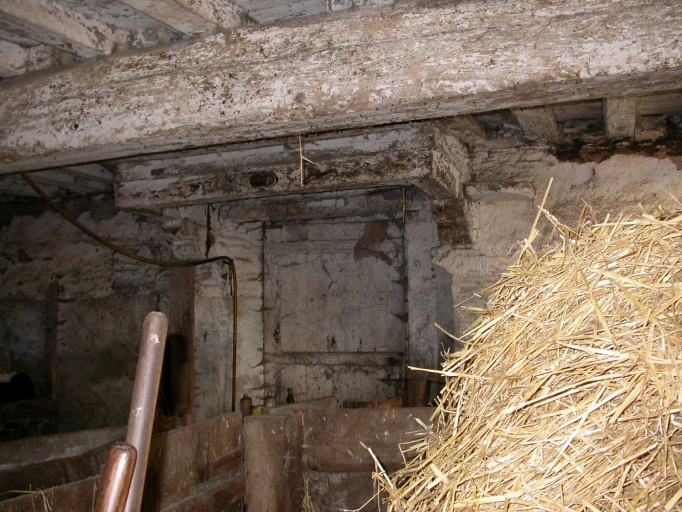 Poutraison et cheminée de l'ancien logis devenu étableImmatriculation