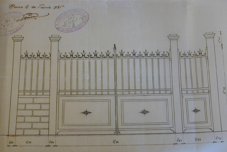 Grille de l'entrée de la mairie-école par l'ingénieur Lenoux en 1935Immatriculation