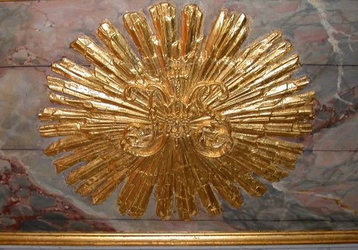 Décor du devant d'autel : IHS et rayonsImmatriculation