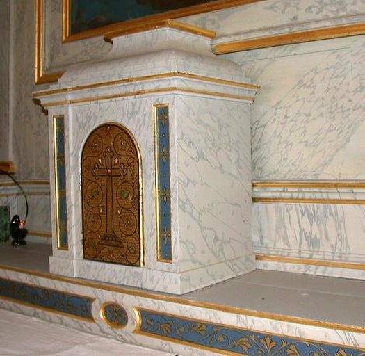 Ensemble de l'autel de la Vierge : autel, tabernacle, gradin d'autel, degré d'autel, retable (Saint-Aubin-du-Pavail fusionnée en Châteaugiron en 2017),