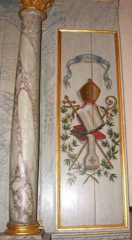 Retable, décor de l'aile droite : insignes de l'archevêqueImmatriculation