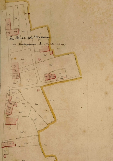 Extrait du cadastre de 1850, la rue au PrévotImmatriculation