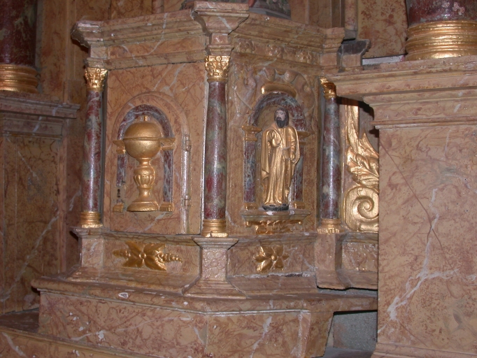 Ensemble de l'autel du Sacré Coeur : autel, tabernacle, 2 gradins d'autel, retable, degré d'autel,