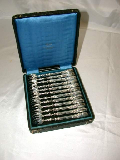 Ensemble de 12 fourchettes à dessert dans leur coffret,