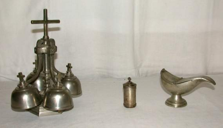 Sonnette liturgique, ampoule à sainte huile, navette à encensImmatriculation