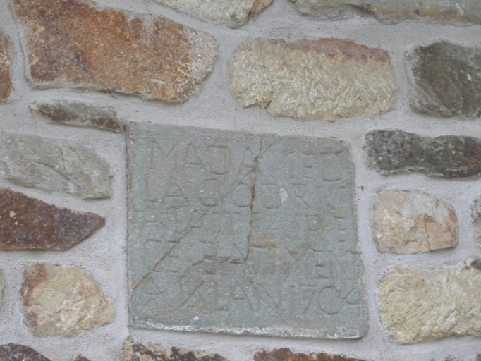 Inscription portée sur l'hospice indiquant le nom de la commanditaire et l'année de constructionImmatriculation