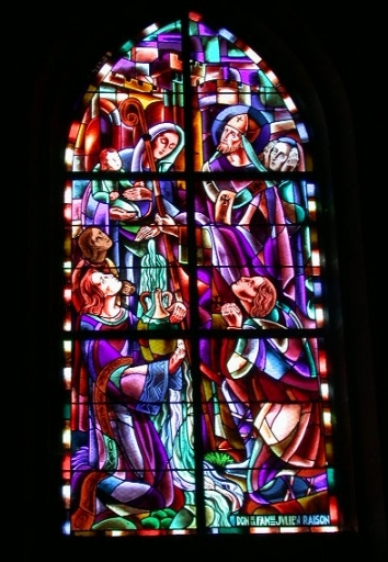 8 verrières, baies 5 à 14 : Saint Yves, Présentation de l'Enfant au temple, saint Roch, saint Esprit, Christ, Jeanne d'Arc, saint Evêque, Dieu le Père,