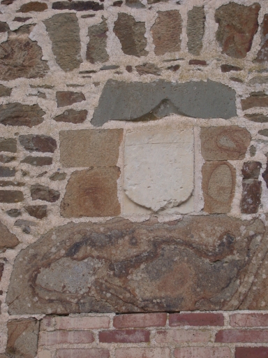 Logis, façade est, détail, porte murée avec blason muetImmatriculation