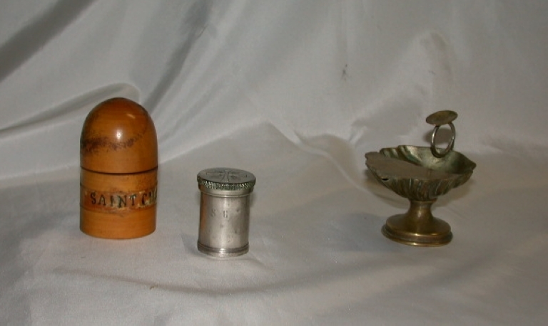 Ampoule à saint-Chrême et coquille de baptêmeImmatriculation