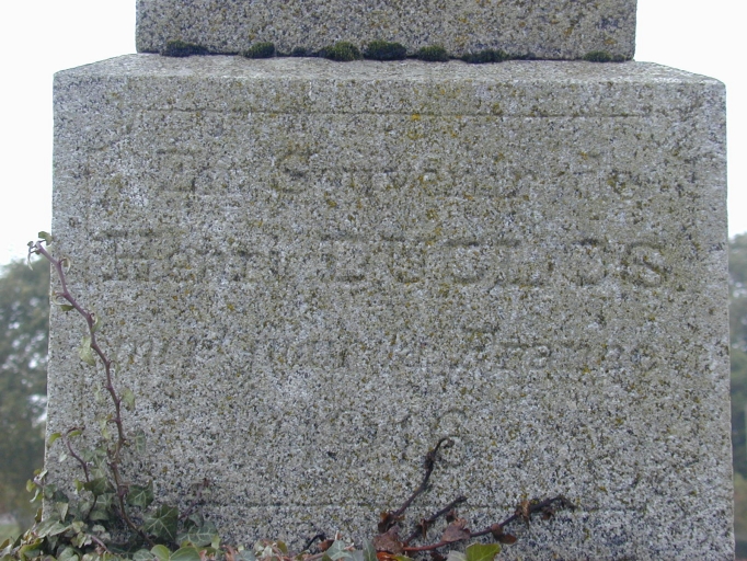 Détail de la base de la croix, avec inscriptionImmatriculation