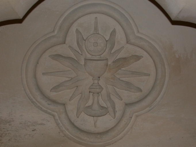 Autel, tabernacle à ailes, dais d'exposition et deux bas-reliefs : la Cène ; Flagellation,