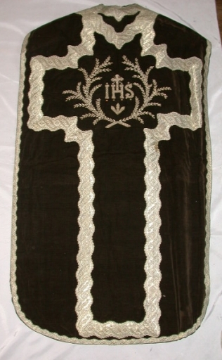 Ornement noir 1 : chasuble, étole, bourse de corporal,