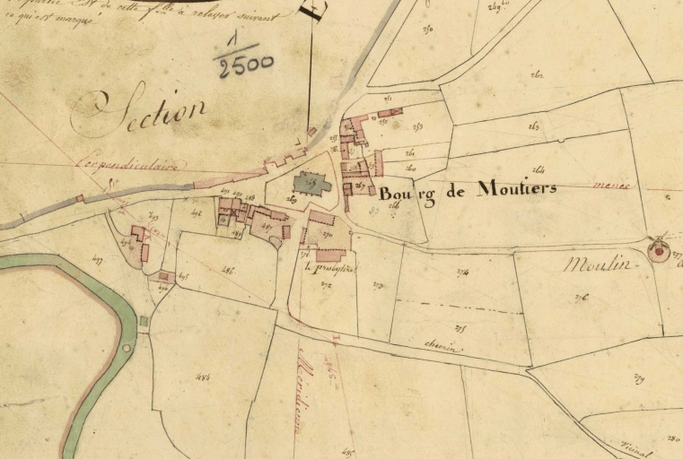 Le sud du bourg de Moutiers (cadastre de 1827)Immatriculation