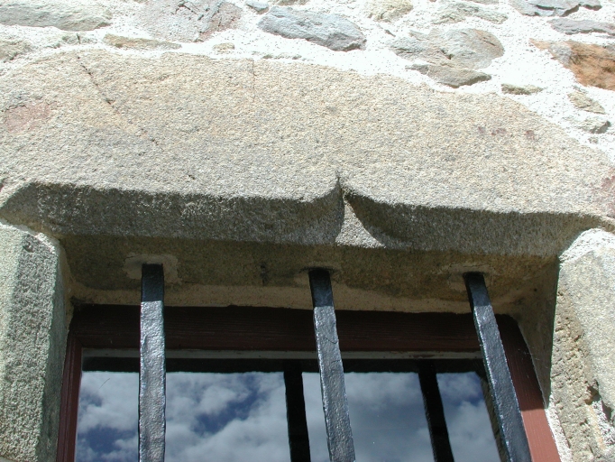 Détail de la fenêtre, vue du linteau avec l'accoladeImmatriculation