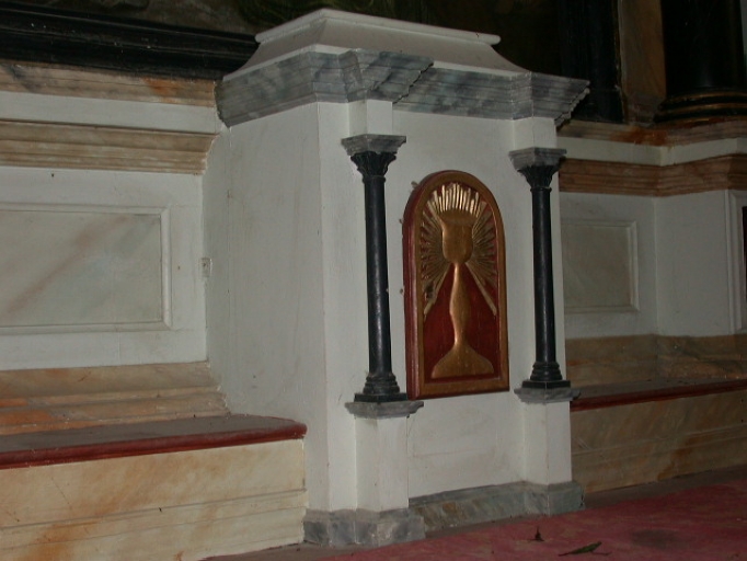 Ensemble de l'autel du Christ : autel, tabernacle, gradin d'autel, retable,
