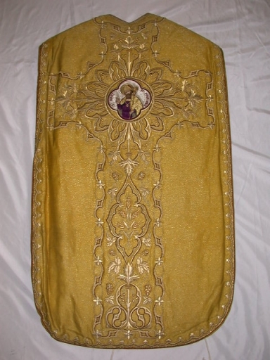 Ornement doré 1 : chape, voile de calice, étole, pale, manipule,