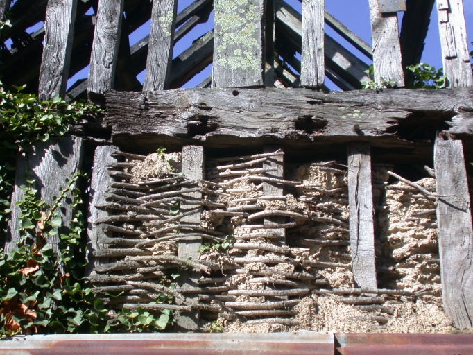 Grange ou remise, détail du montage du pan de boisImmatriculation