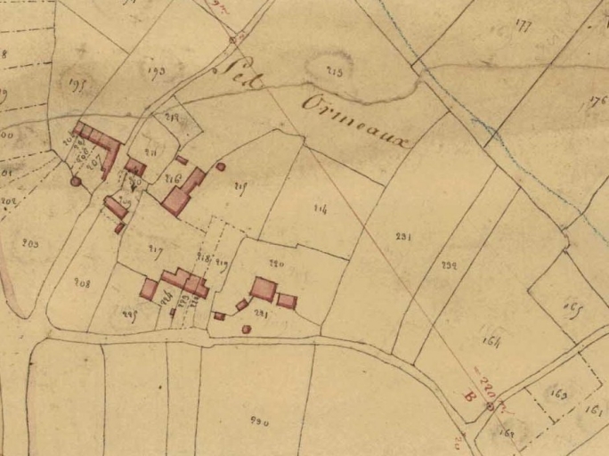 Extrait du cadastre de 1827, section E1, n° 220-221Immatriculation
