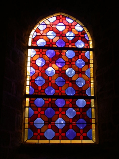Ensemble des 9 verrières à personnages des baies 1, 3, 4, 6 à 8, 10, 12, 00 : ND de Lourdes, Communion de saint Jérome, Résurrection de Lazare, Christ au mont des Oliviers, Christ préchant, Laissez venir à moi les petits enfants, Jésus et la Samaritaine,