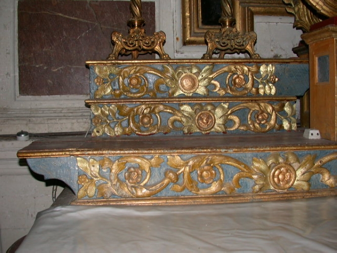 Ensemble du maître-autel : autel, tabernacle, exposition, 3 gradins d'autel, retable, 2 degrés d'autel,