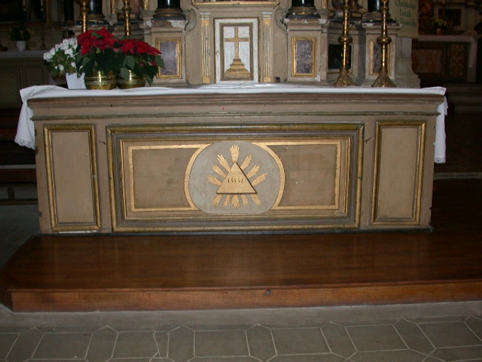 Ensemble de l'autel de saint Clair, aujourd'hui du Sacré Coeur : autel, tabernacle, retable,