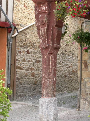Détail de l'un des poteaux soutenant le porcheImmatriculation