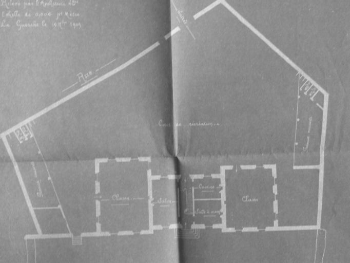 L'école et la cour de récréation sur le plan de 1909Immatriculation