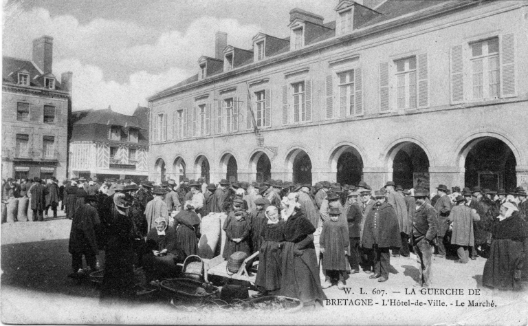 Le marché sur une carte postale ancienneImmatriculation