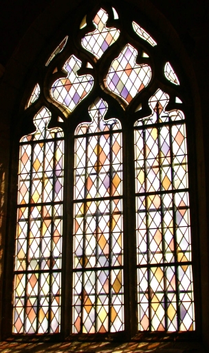 Verrière à personnages de la baie 6 : Saint Etienne et verrières décoratives des baies 2, 4 et 00,
