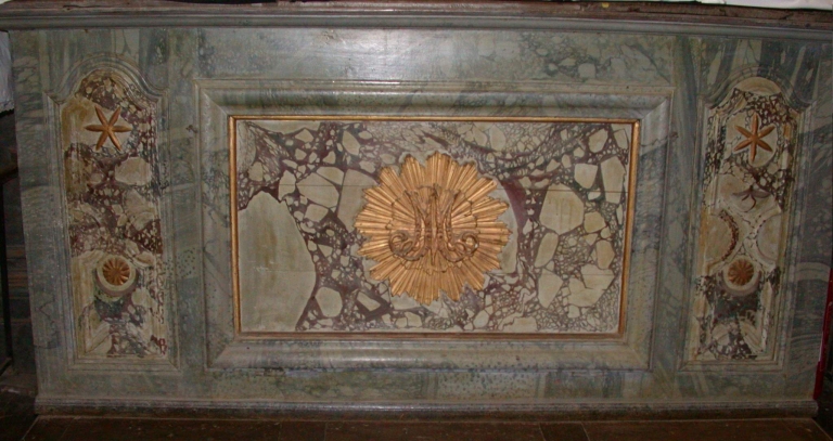 Ensemble de l'autel de la Vierge : autel, retable, gradin d'autel, degré d'autel,