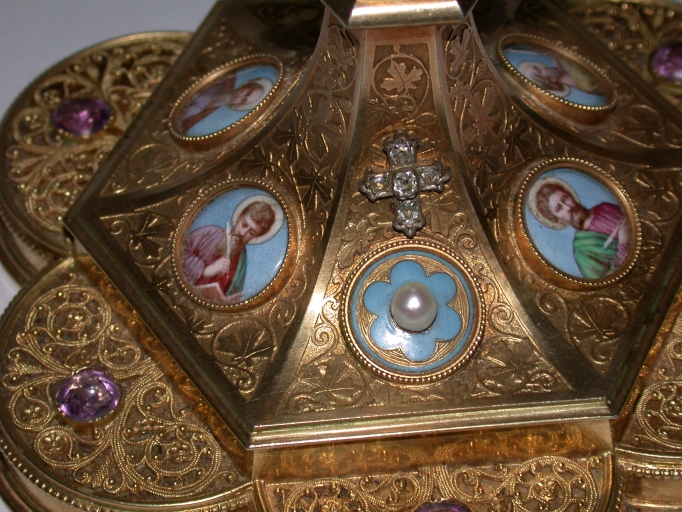 Décor du pied : deux évangélistes et une perleImmatriculation