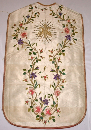 Ornement blanc 2 : chasuble, bourse de corporal, étole, manipule, voile du calice,