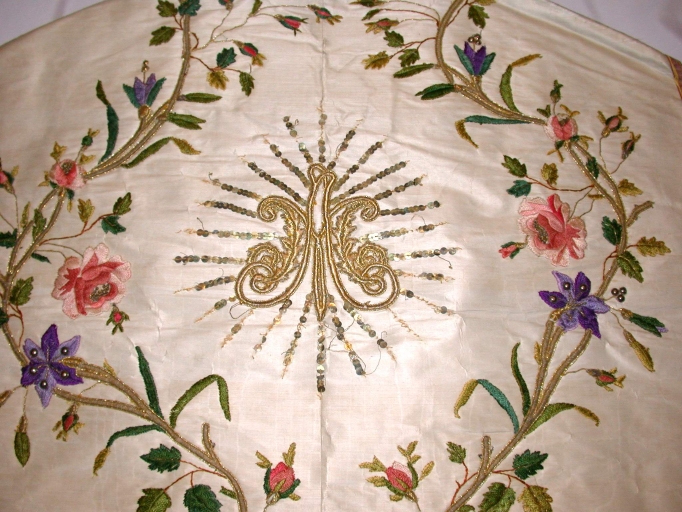 Ornement blanc 2 : chasuble, bourse de corporal, étole, manipule, voile du calice,
