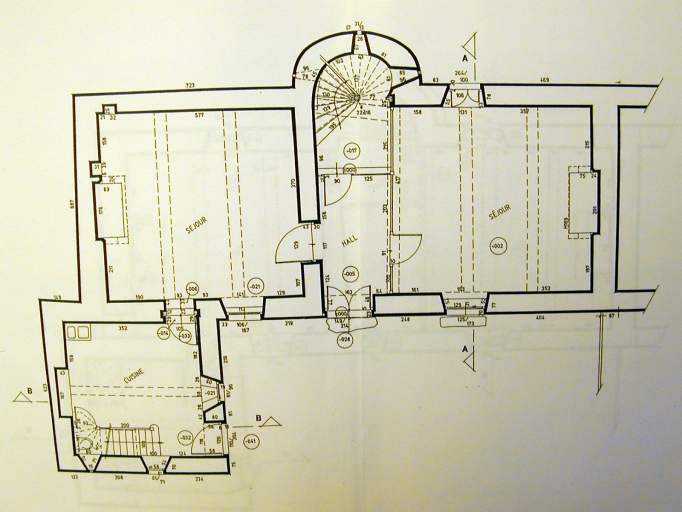 Plan du rez-de-chaussée, état ancien, échelle 1/100. (Service départemental de l'architecture et du patrimoine).Immatriculation