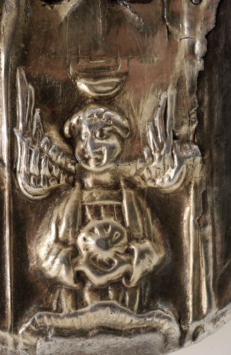 Reliquaire, face : ange (supérieur) tenant la couronne d'épines (état en 2004)Immatriculation
