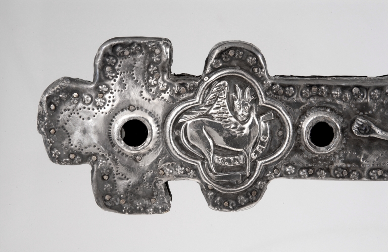 Croix de procession : avers, médaillon au boeuf de saint LucImmatriculation