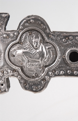 Croix de procession : revers, médaillon au boeuf de saint LucImmatriculation