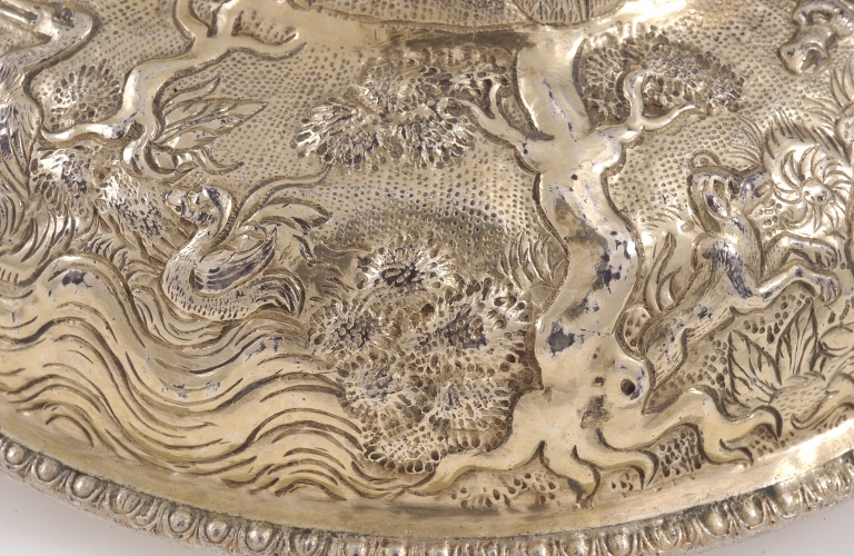 Ciboire : couvercle, scène de chasse au gibier d'eau (autre détail)Immatriculation