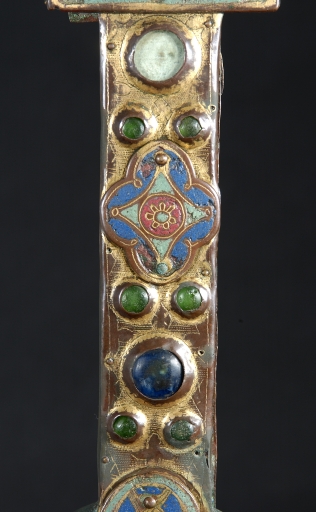 Croix de procession : décor de cabochons et plaque émailléeImmatriculation