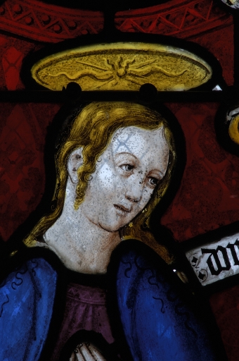 Chapelle Notre-Dame de Locmaria, baie 4, détail de la Vierge.Immatriculation