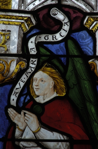 Chapelle Notre-Dame de Locmaria, baie 4, détail de l'ange.Immatriculation
