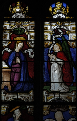 Verrière baie 4 (verrière figurée) : Annonciation (L') ; Vierge de Pitié (La),