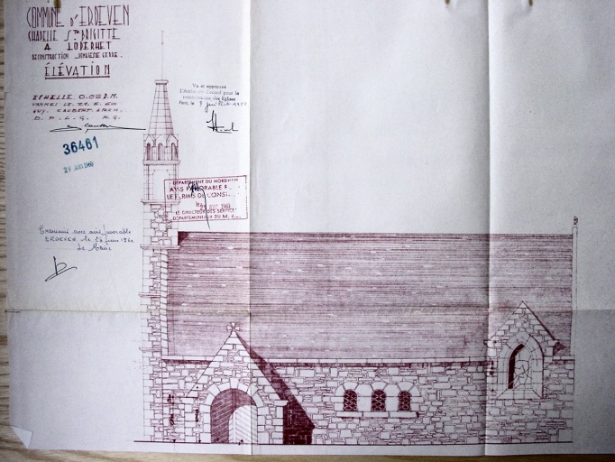 Elévation sud par Caubert en 1960 (A. D. Morbihan, 7W 5833)Immatriculation