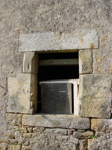 Façade sud de l'étable, détail fenêtre en remploiImmatriculation
