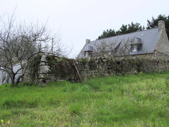 Vue d'ensemble sud-est, avec mur d'enclos.Immatriculation