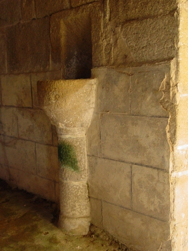 Vue intérieure, détail du bénitier de la porte sud.Immatriculation