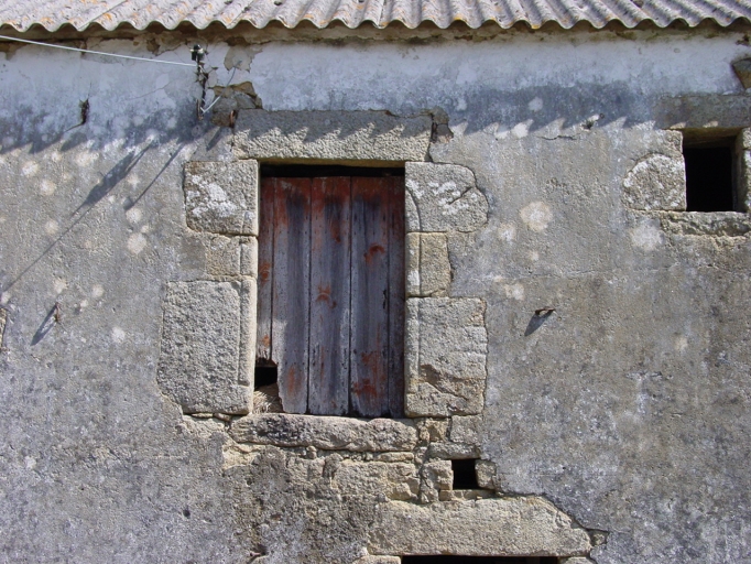 Logis-étable, façade sud, détail porte haute.Immatriculation