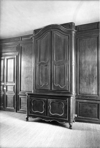 Corps de logis principal, rez-de-chaussée, salle lambrissée (18e siècle) avec buffet d'attache contre le mur est. Etat en 1978.Immatriculation