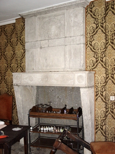 Logis principal, aile nord, salle est. Cheminée néoclassique en pierre blanche.Immatriculation